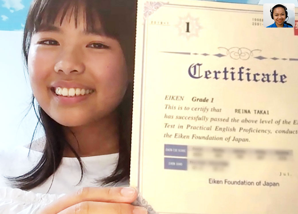 4歳でオンライン英会話を始め、家族と一緒に英語に親しみながら学習を続けてきました。小学校2年生で英検2級に合格し、その後は英検コースに進んで弟さん・妹さんと家族シェアで学び、中学1年生で英検準1級、さらに半年足らずで英検1級にも合格するという驚異的な成長を遂げました。
